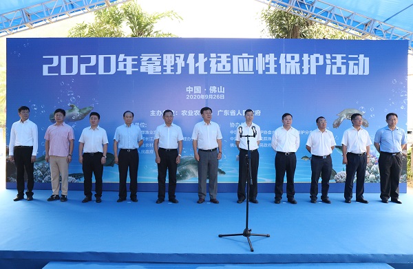 9月26日,农业农村部和广东省人民政府在广东省佛山市联合开展鼋野化适应性保护活动。农业农村部副部长于康震出席活动并讲话。