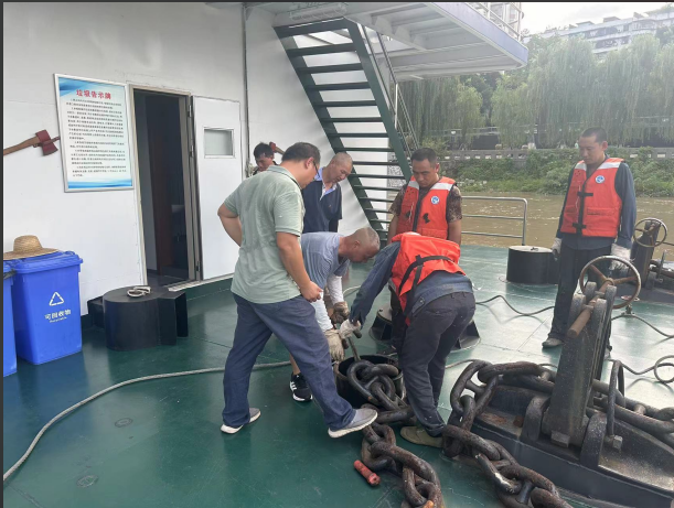 农业农村部泸州渔政执法基地根据长江上游水文水资源局宜宾分局修订洪峰预报,2024年7月26日8时将出现洪峰水位12.40m,长江现代城滨江路人行步道、长江生态园露天停车场、沿江低洼地带将会有淹没风险。这是该执法基地所属趸船运行以来,首次遇到洪峰过境,汛情就是命令!泸州渔政执法基地第一时间开展动员部署,党员干部和基地船员迅速行动,投入防汛避灾,立即启动防汛应急预案,基地分管领导、管理科室负责人靠前指挥,带领党员、船员迅速做好洪峰过境准备工作。一是强化值班值勤保安全。基地管理党员干部和船员共10人,全部坚守在趸船,做好各种应急准备。每2人一组2小时更换,做好24小时值班值勤,时刻检查并保持趸船各项设备、机电安全。二是认真查漏补缺消隐患。在排查隐患中,发现趸船首锚、尾锚锚链较短,不能适应现洪峰高度安全要求,基地迅速组织抢险队10人,持续工作12个小时,为趸船首尾锚各增加25米锚链,消除了洪峰过境趸船接岸风险。三是积极做好后勤保供给。洪峰过境前,为基地保障供应了手电筒、水、干粮等工作、生活物资,确保洪峰过境期间,基地工作人员工作、生活物资不短缺。四是主动当好防溺水宣传员。洪峰过境期间,部分市民群众出于好奇,聚集在浅水处踩水玩水,有的还带着小朋友一起,为确保市民群众人身安全,基地党员主动请缨,负责基地周围市民群众的宣传劝导和疏散工作。在洪峰过境期间,通过基地党员干部和船员的共同努力,排查整改隐患5处,劝导疏散200余名市民群众,确保洪峰过境期间基地和基地周围群众无一人受伤、无一人发生溺水险情。