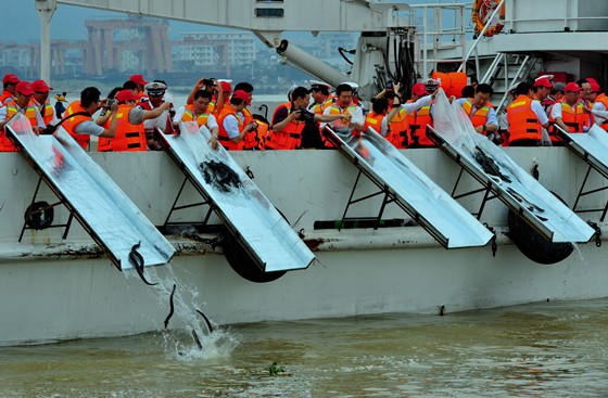 今年,各省加大了珍稀保护物种和特有鱼类的放流力度。四川省放流了200尾国家一级保护动物——有着“水中大熊猫”之称的达氏鲟;湖北省放流了1200尾珍稀水生动物中华鲟、达氏鲟;湖南省张家界市和甘肃省秦州分别放流国家二级保护水生野生动物大鲵500尾和1000尾;安徽省放流胭脂鱼43万尾;西藏放流本土鱼类共计350万尾。