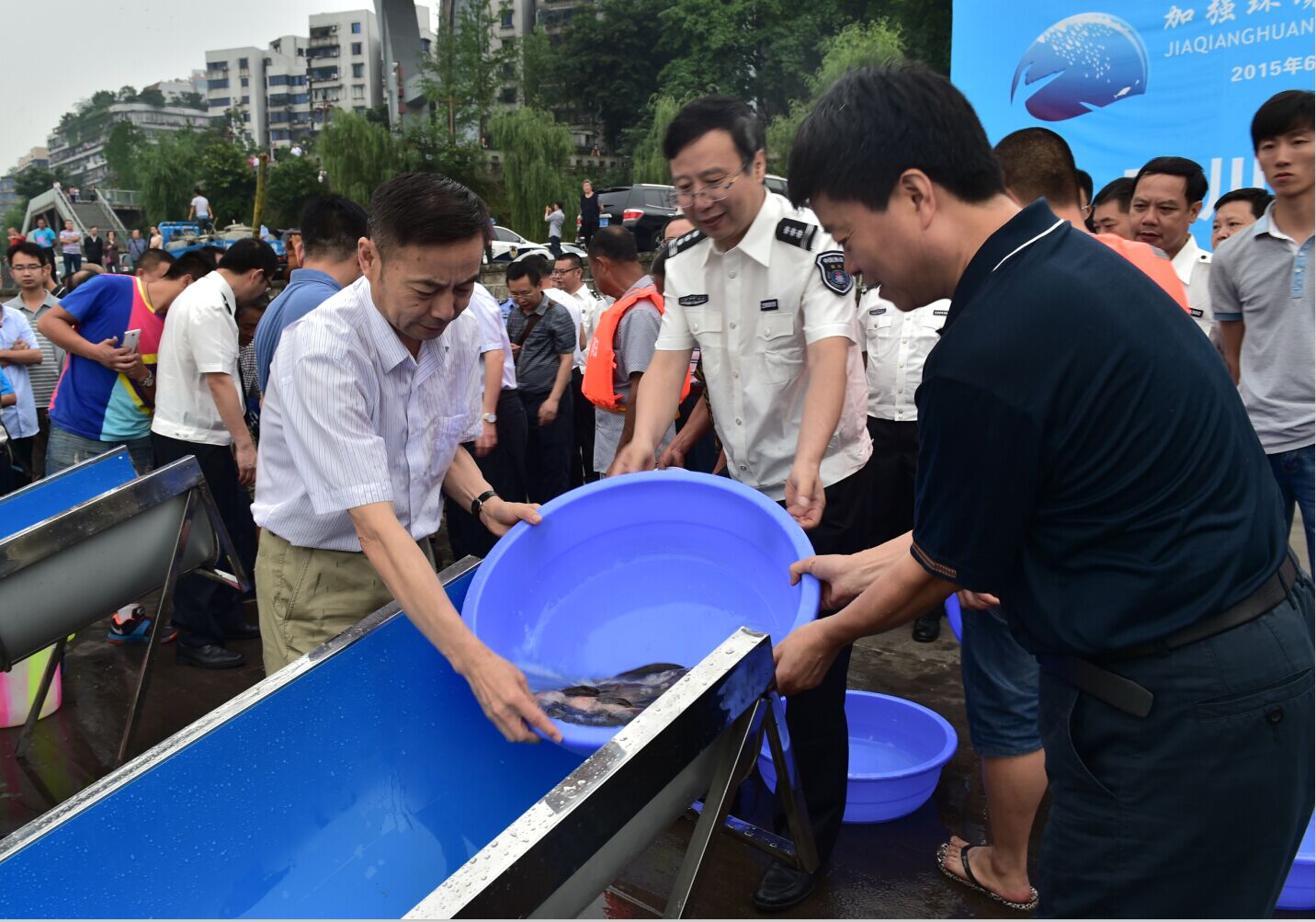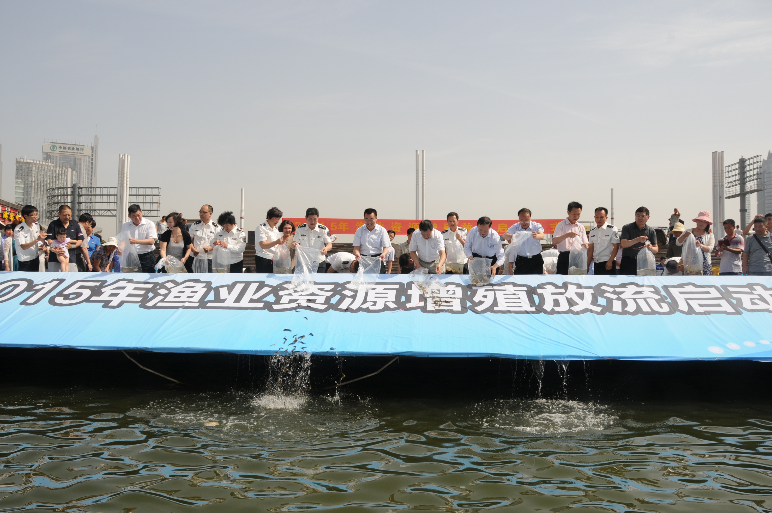 6月6日,农业部副部长于康震、中国海洋石油总公司武广齐副总经理,以及中央外事办、全国人大环资委、财政部、环境保护部和国台办等部门的相关领导出席并参加了在福州举行的2015全国增殖放流活动。长江流域各省同步开展放流活动。仅6月6日当天,长江流域各省累计投放各类经济、特色和珍稀保护物种共计约7.42亿尾(只、粒)。