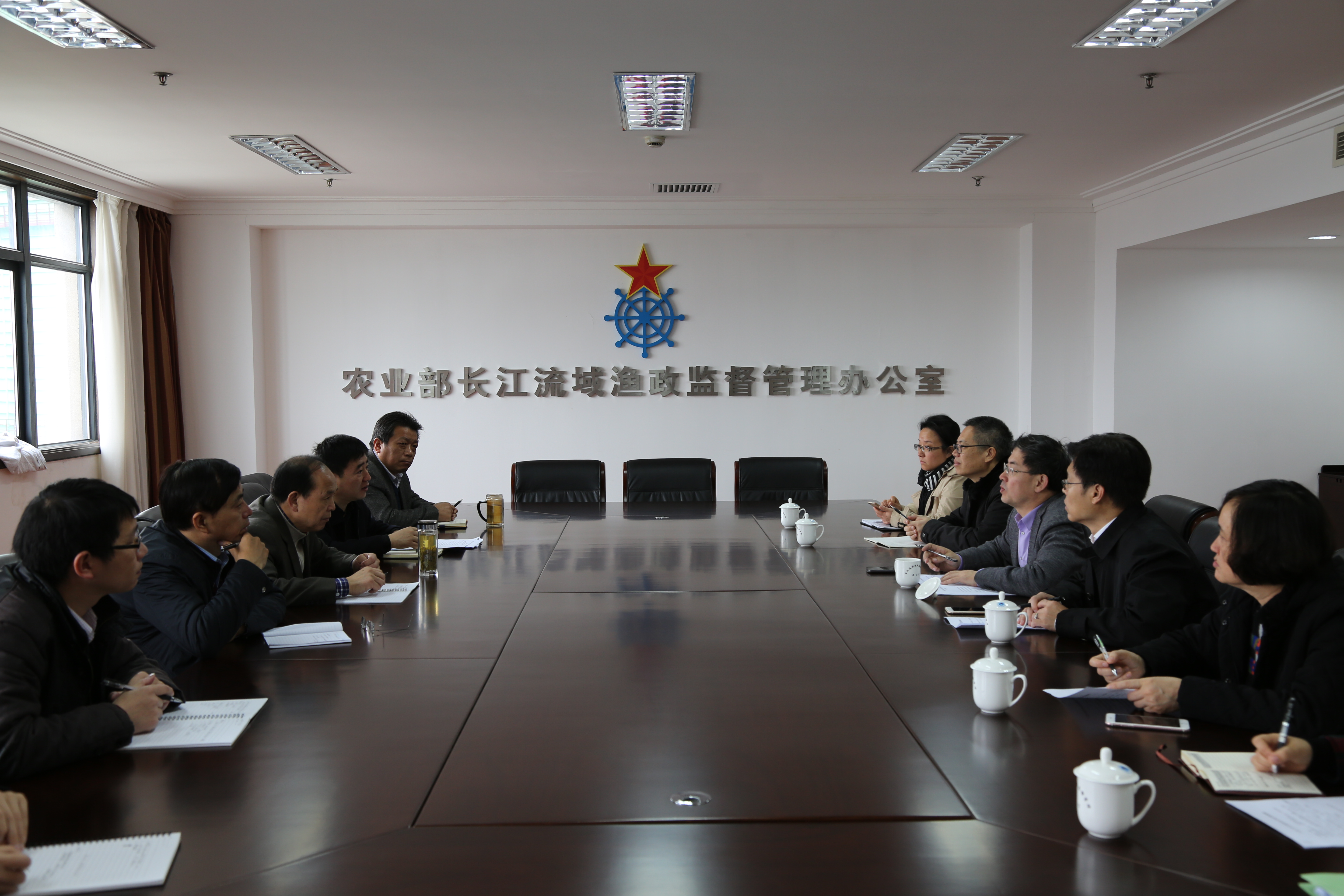 3月10日,农业部长江办与中国水产科学研究院珠江水产研究所在上海座谈,共同推进珠江流域渔政管理基础设施建设工作。长江办李彦亮主任、韩旭副主任、董金和副巡视员、中国水产科学研究院副院长、珠江水产研究所所长刘英杰等出席了座谈。