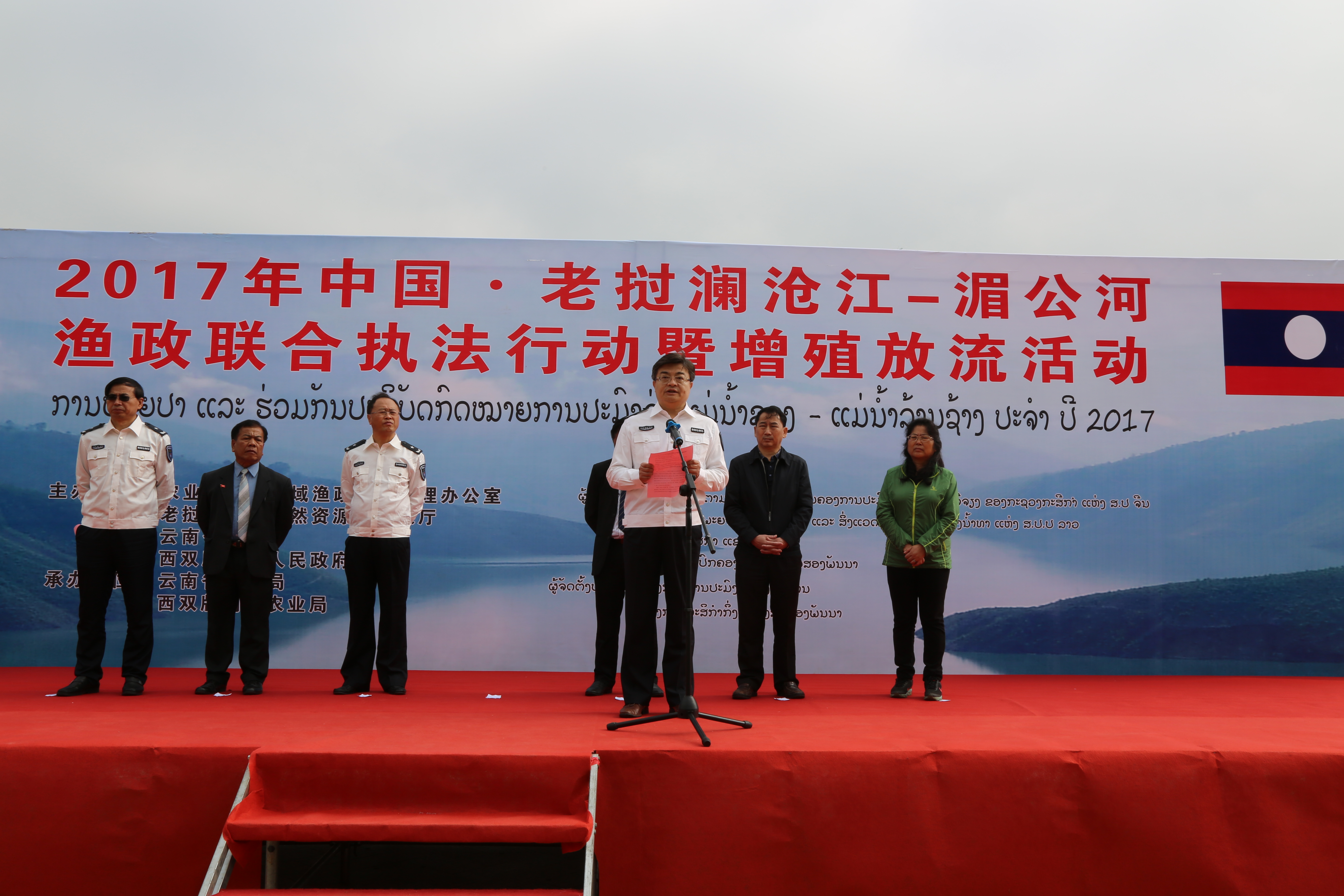 12月6日,农业部长江流域渔政监督管理办公室联合云南省农业厅、云南省西双版纳傣族自治州人民政府与老挝人民民主共和国自然资源与环保部、南塔省自然资源与环保厅共同开展“2017中国·老挝澜沧江—湄公河渔政联合执法行动暨增殖放流活动”。农业部长江流域渔政监督管理办公室主任马毅、副巡视员董金和,云南省农业厅党组成员、省渔业局局长张穆,老挝人民民主共和国自然资源与环保部水资源司副司长彭赛出席活动。中老双方有关部门和地方负责同志、渔政执法人员以及当地渔民群众代表参加活动。