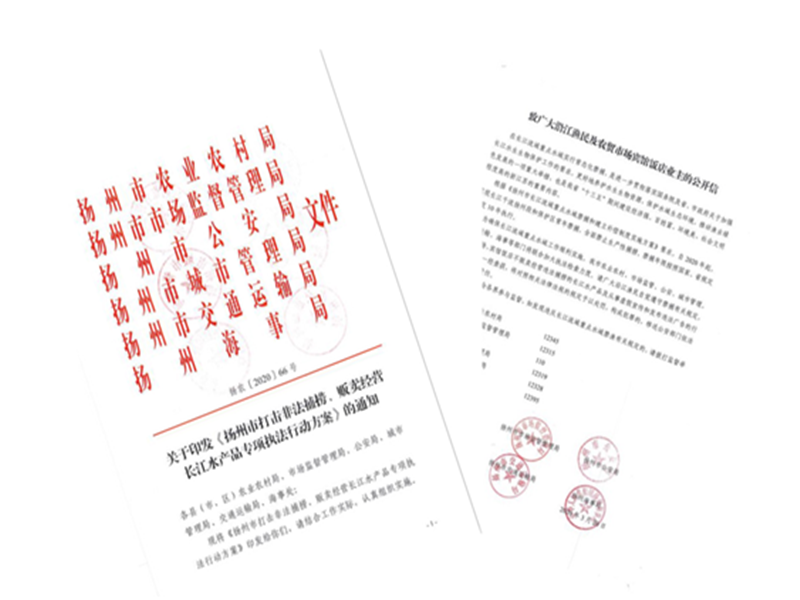 3月20日,扬州市农业农村局联合市市场监督管理局、公安局、城管局、交通运输局、扬州海事局等部门下发了《扬州市开展打击非法捕捞、贩卖经营长江水产品专项执法行动方案》,并组织开展专项执法行动,进一步保护长江流域水生生物资源,持续推进水域生态文明建设。